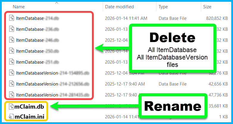6. Rename the file “mClaim.db” to “mClaim_old.db” (or any other name)